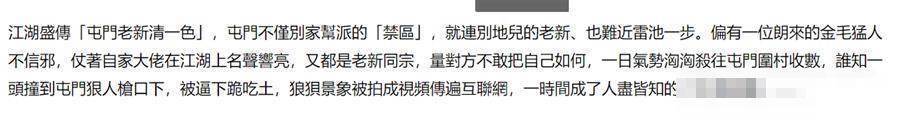 在屯門隔壁的元朗,有位頗有名望的江湖大佬,因老家在元朗元崗村,坊間人稱「元崗黑」。「元崗黑」行走江湖二十余年,與14K大佬「四眼民」關系密切,又與「勝和太上皇」囝囝過從甚密,「元崗黑」與屯門老新也有聯絡,曾與大總管林江一起出現在屯門猛人「忽得超」婚禮上,而「忽得超」與「肥杰」是好兄弟,兩人同為「側頭送」門生。