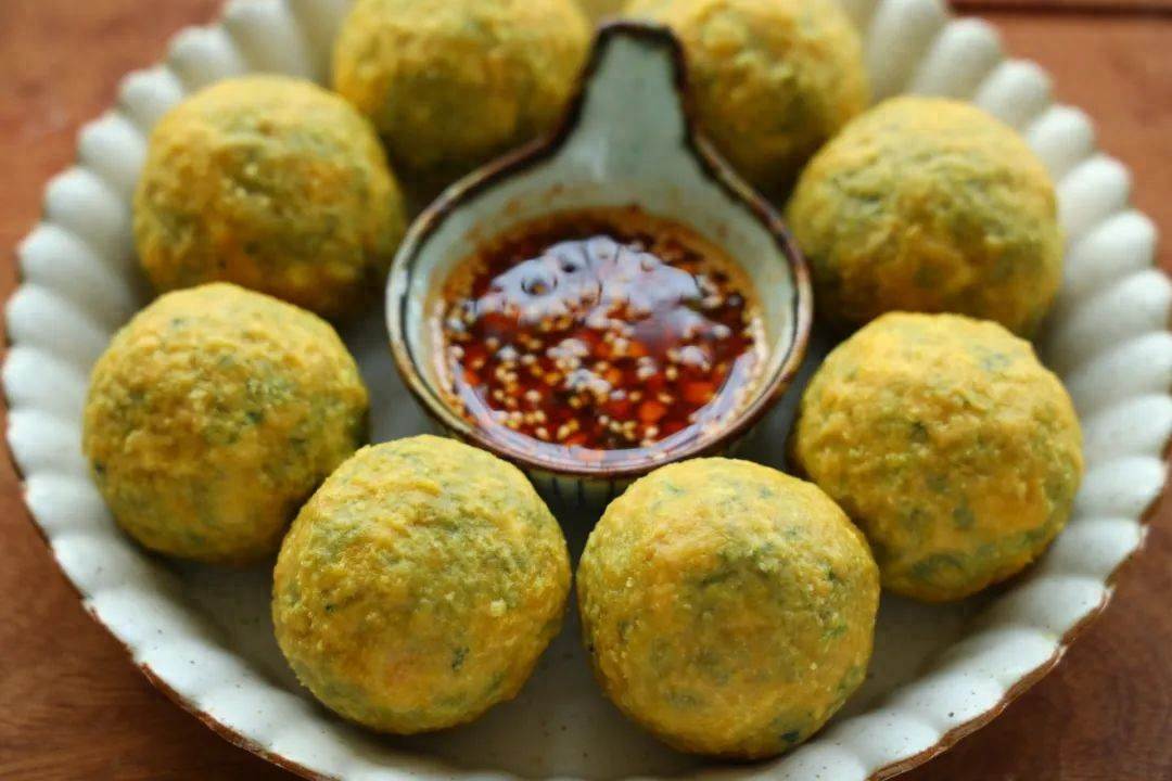 要問最近我家廚房的C位選手是誰?必須是這個圓滾滾、金燦燦的「小米麵菜團子」!別看它外表像顆可愛的小太陽,掰開內餡那才叫驚豔——翠綠的菠菜、橙紅的胡蘿蔔、嫩黃的雞蛋、焦香的豆幹和鮮美的香菇,五色交織像打翻了春天的調色盤,連平時挑食的小朋友都忍不住連吃四個!