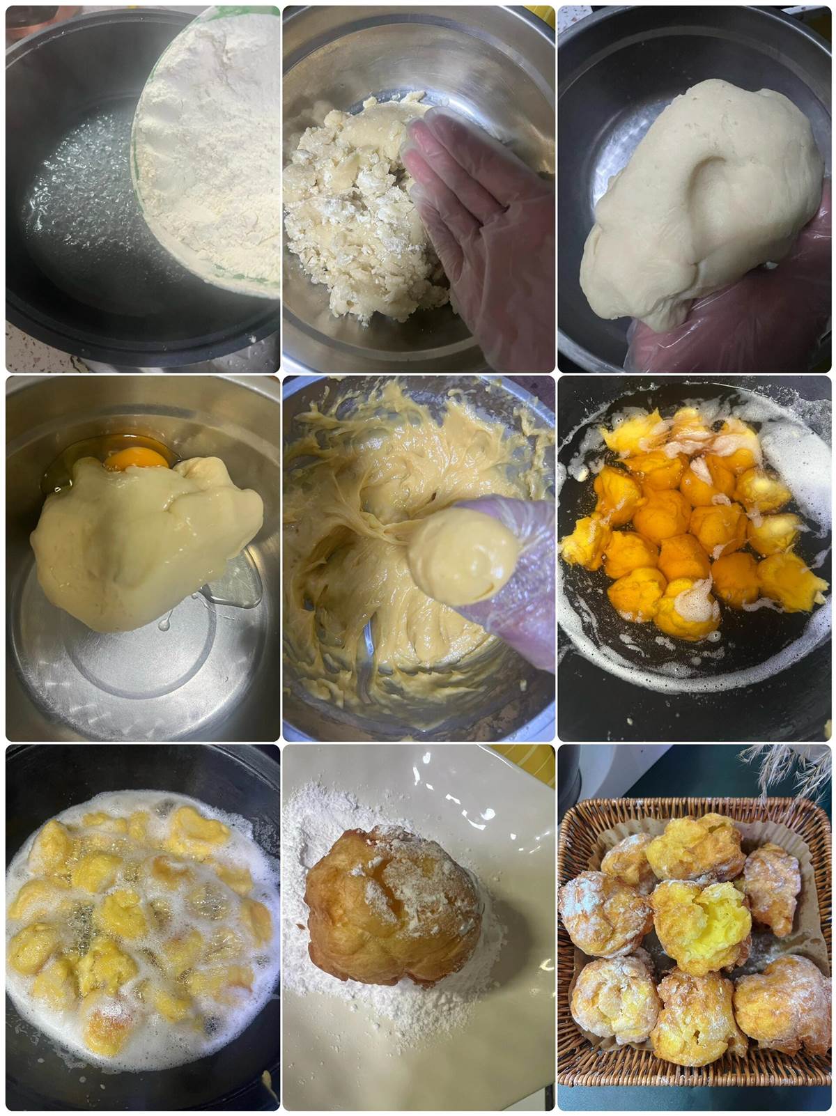 用料水230克豬油30克中筋麵粉230克雞蛋6個臭粉 (可無)2克植物油1000克糖粉50克