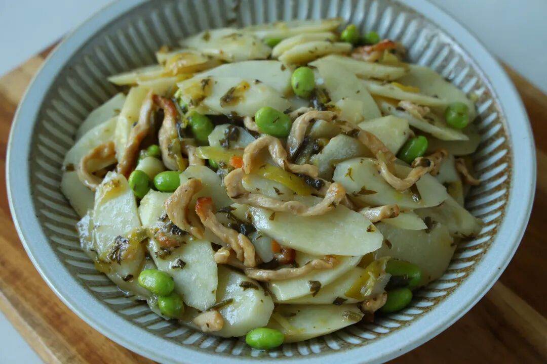 每次不知道該炒什麼菜的時候,我總會想起冰箱裡那幾樣常備的食材——一塊瘦肉,兩根山藥,再抓把毛豆米,配上點酸菜,隨便一炒,就是一道讓人胃口大開的家常美味。