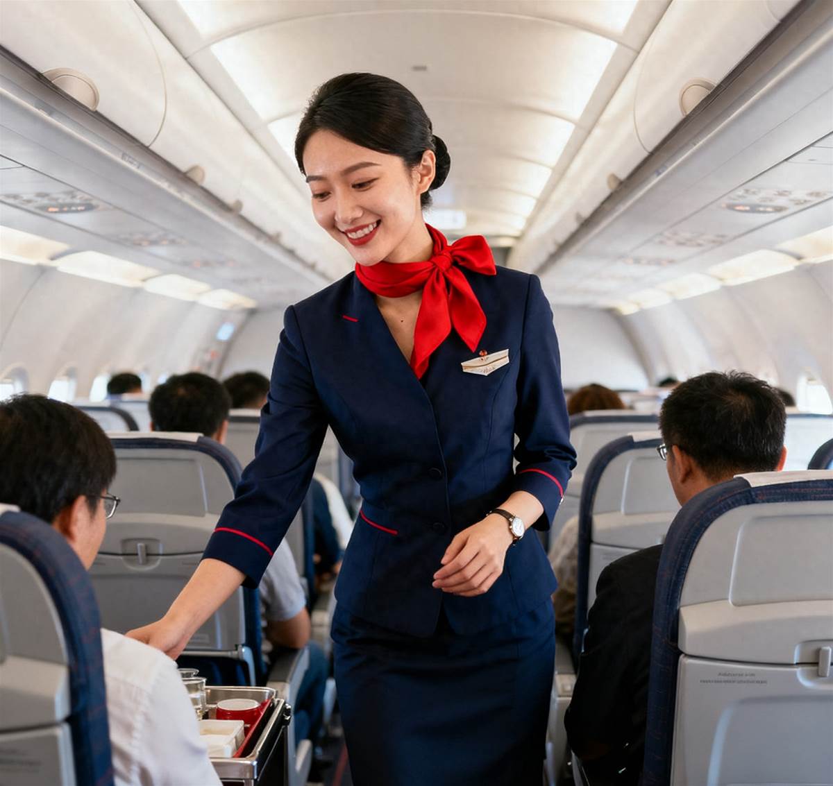 空姐作為飛機上的服務人員,不僅給南來北往的人們送上了燦爛的笑容,還奉上了關懷備至的優質服務,成了人們路途中一道靚麗的風景線。更令人好奇的是,空姐在飛機上都是上半身穿著正裝,下半身穿著裙子。