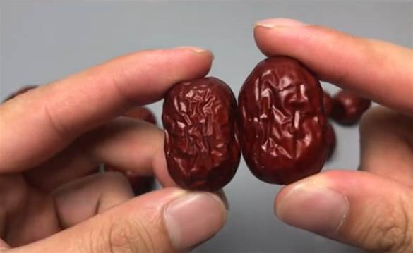 用硫磺燻過的紅棗顏色會比較紅,而且紅色均勻,表面光滑飽滿,沒有任何瑕疵。
