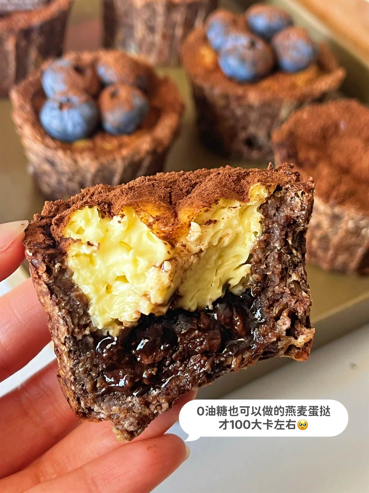 低卡甜品|空炸就搞定0油糖流心燕麥蛋撻杯