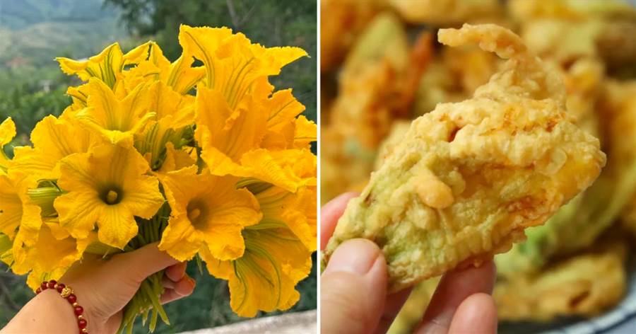 採摘幾把沒人留意的南瓜花。當花蕊輕柔摘去,將花瓣細心浸入淡鹽水中,一場華麗變身已悄啟幕。