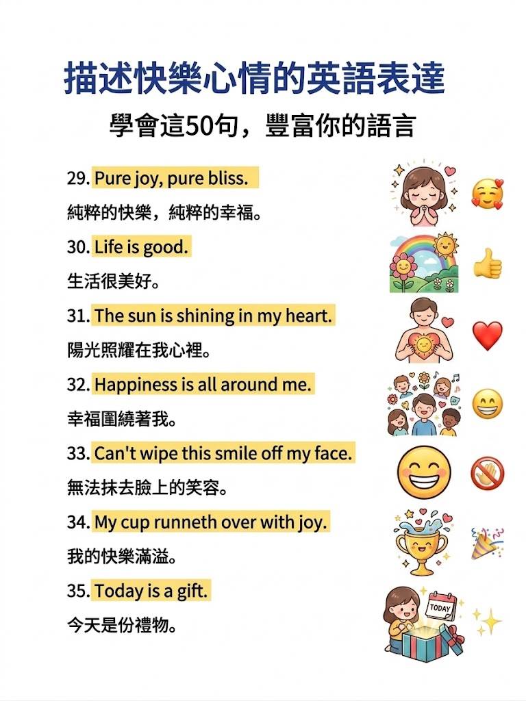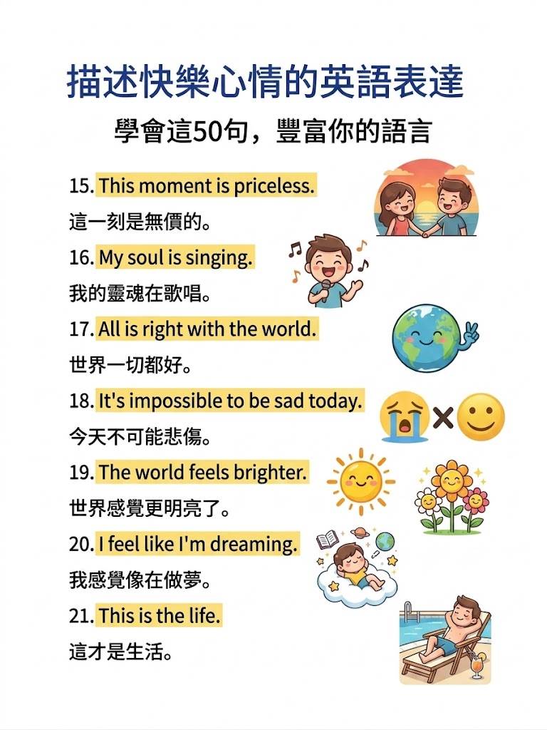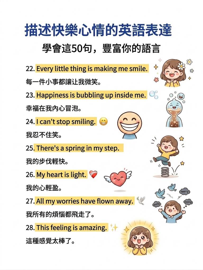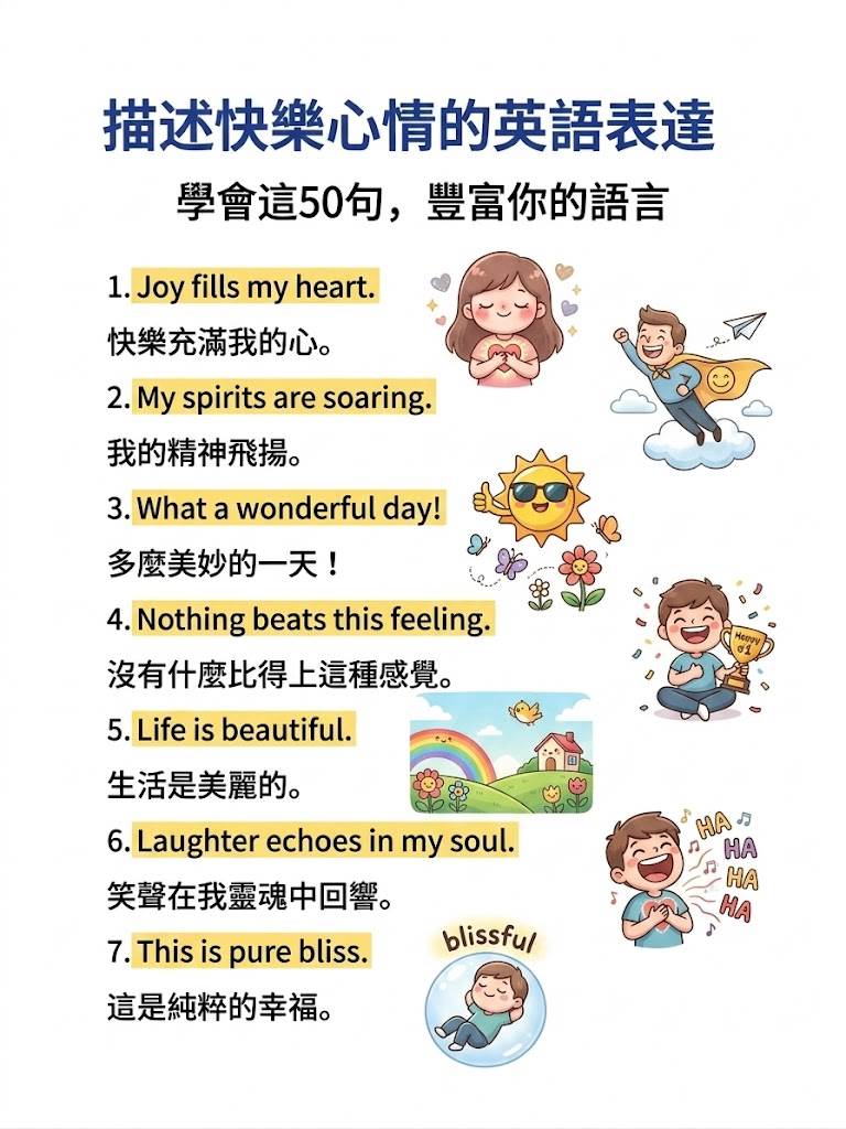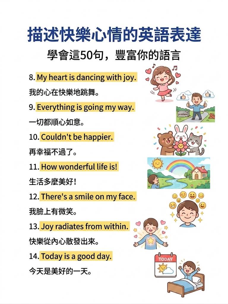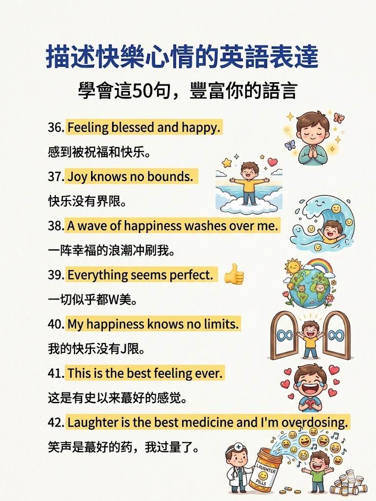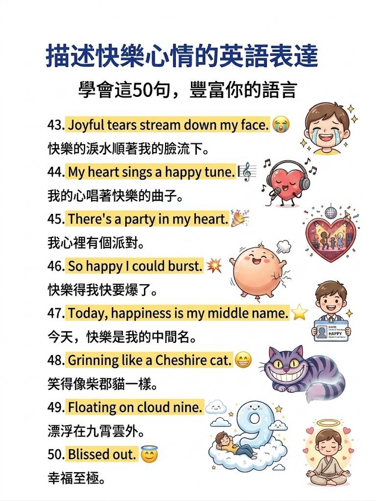 別慌! 英語里的「快樂」遠不止一個「happy」。今天為大家整理了50句地道又高級的快樂表達,從俚語到詩意短句,讓你徹底告別表達貧瘠,開口就是地道Native Speaker的感覺!