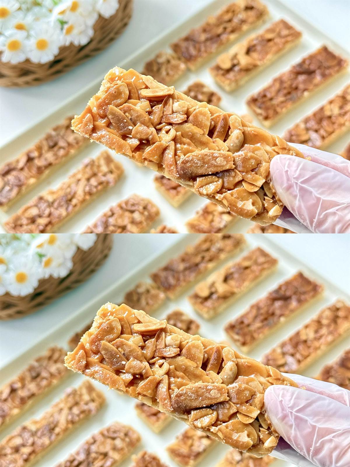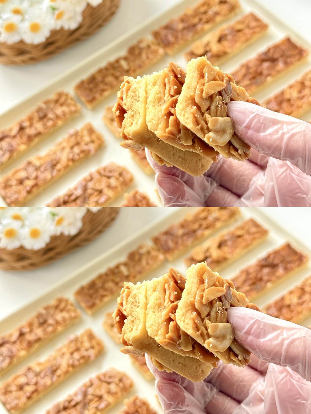 焦糖熬得金黃透亮,裹著大顆飽滿的杏仁,烤到邊緣微微焦脆,