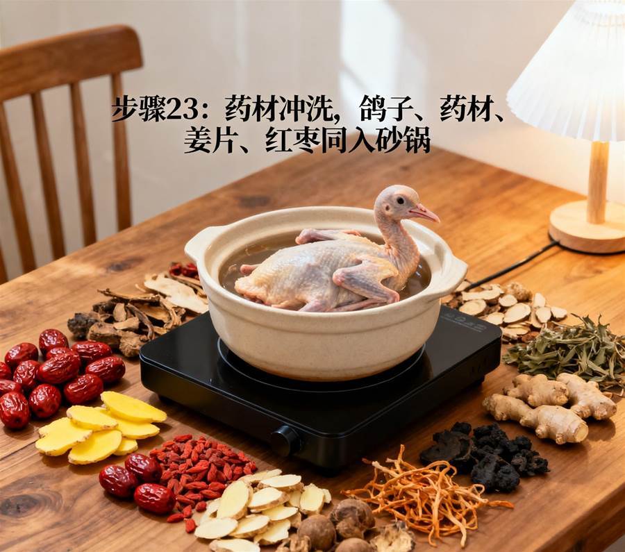 3. 鴿子、藥材、姜片、紅棗同入砂鍋
