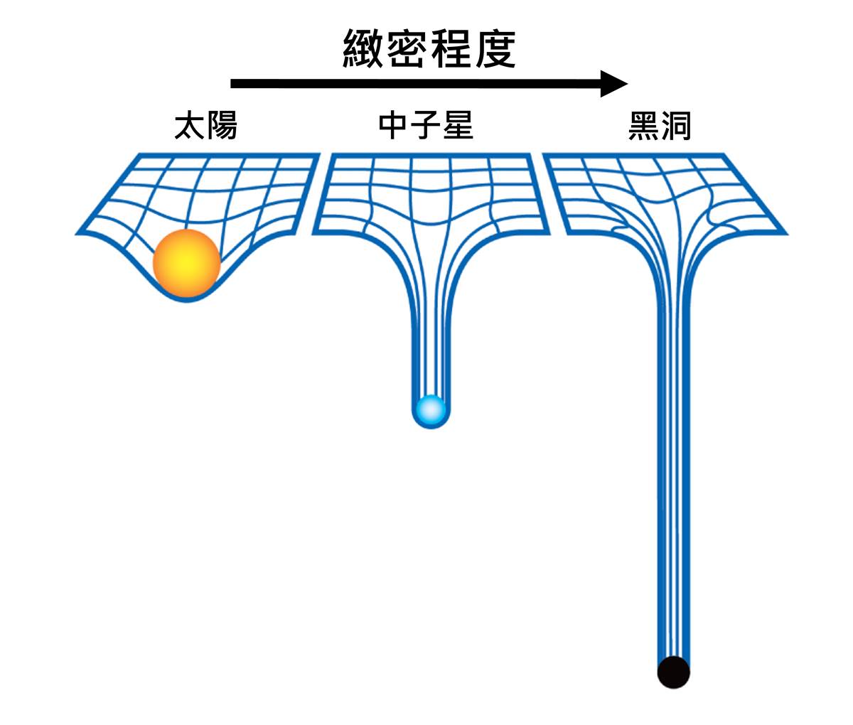 黑洞是宇宙中最可怕的天體,但原本只是廣義相對論預言的產物。1915年愛因斯坦提出引力不是力,而是質量和能量彎曲時空的結果。時空像一張薄膜,物體質量越大造成的彎曲越強。他的場方程描述了物質如何塑造時空幾何。