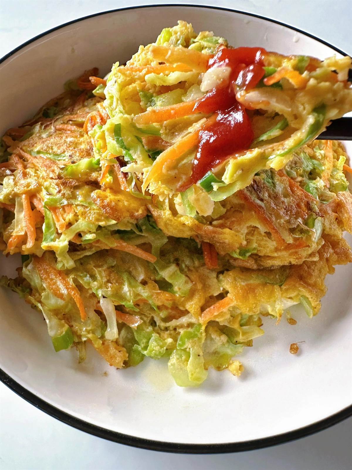 捲心菜和胡蘿蔔、雞蛋搭配營養很均衡,少油少鹽也健康