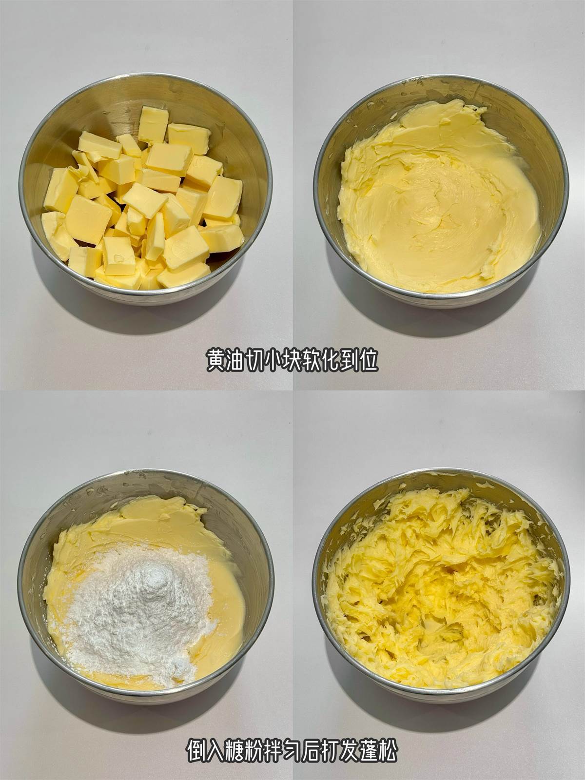 無鹽黃油320克,糖粉110克,全蛋液35克