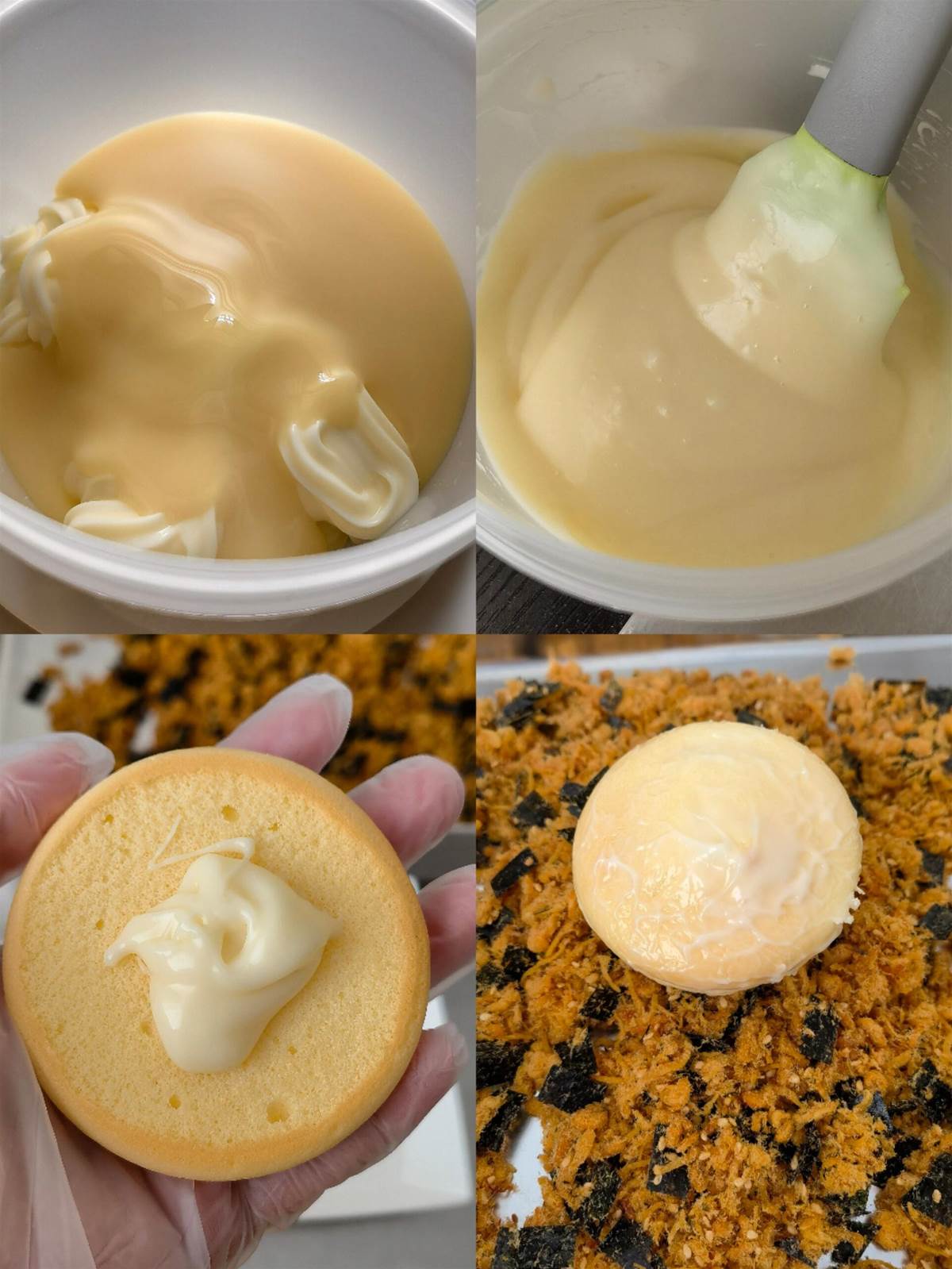 金粒籽女神的方子,蛋黃糊加了一顆全蛋蠻特別,醬料又用了沙拉醬和煉乳的結合,味道真的是很好吃哦~