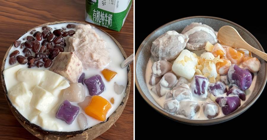 一口下去有奶凍的滑、芋圓的 Q、芋泥的綿、紅豆的甜,幸福感直接拉滿!