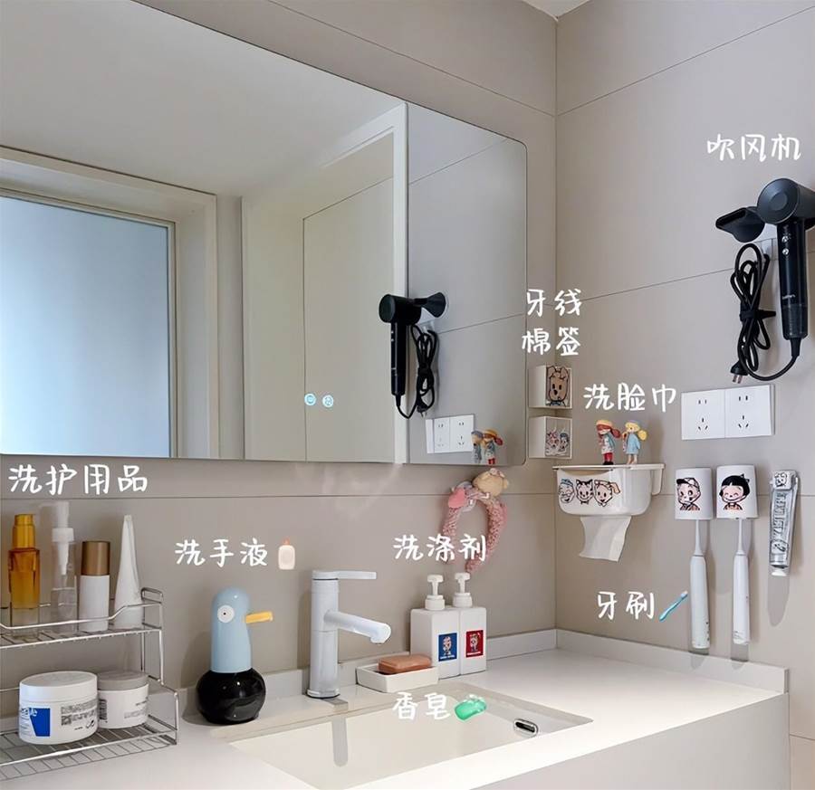台面再大也不夠收納,各種洗漱物品都堆積在明面上,雜亂,還臟兮兮,