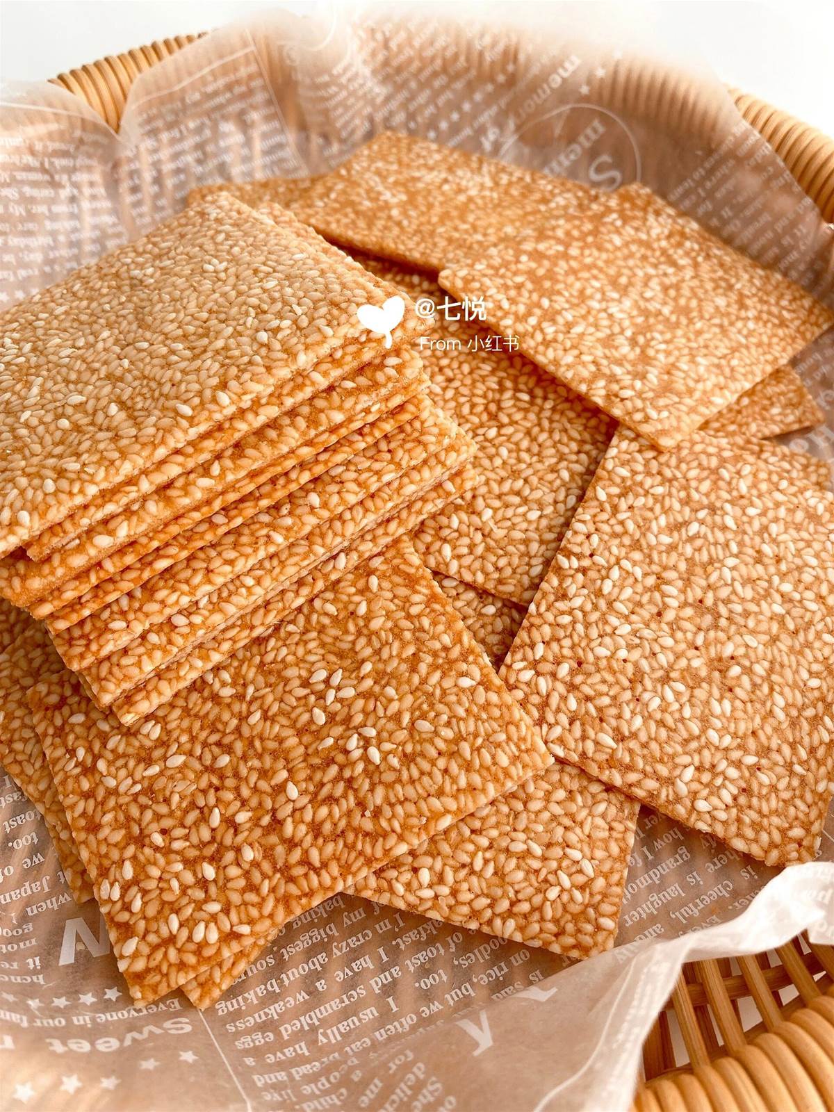 烤出來的餅乾薄如蟬翼,咬下去「咔嚓」一聲嘎嘣脆,滿嘴都是白芝麻的焦香,越嚼越上頭,我一次能炫半盤,追劇、下午茶炫起來超解饞,快安排!