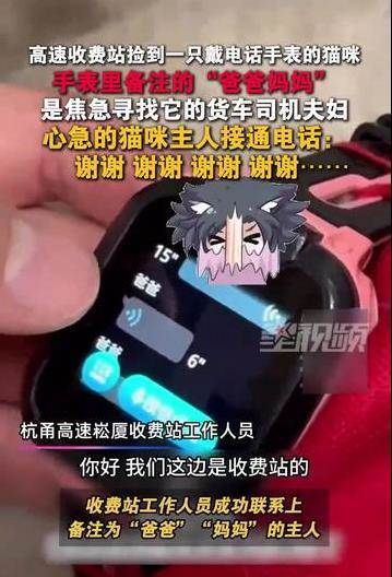 「這貓居然戴手錶,是成精了嗎?」12月9日,高速崧廈站的一則暖心故事,刷爆社交平臺。收費員徐雅潔在出口匝道邊發現一隻穿戴整齊的小貓,伸手安撫時竟摸到它脖子上掛著個迷你電話手錶,滑動螢幕後,「爸爸」「媽媽」兩個聯系人備註,讓這場意外的相遇,變成了跨越半小時車程的團圓救贖。