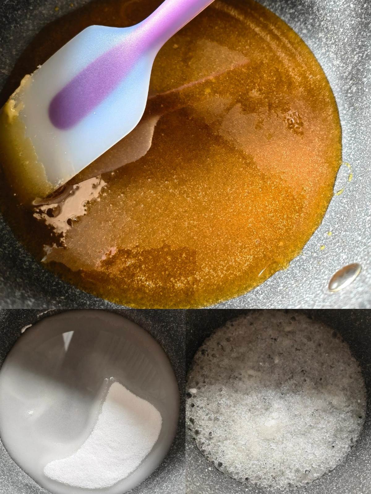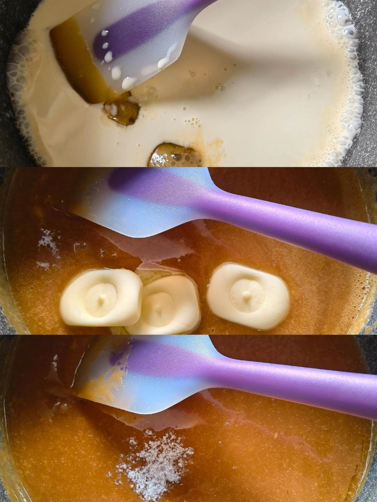 5.期間如果焦糖有結塊,可以開小火攪拌至融化即可;