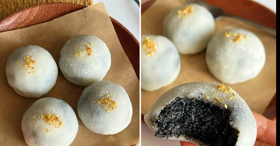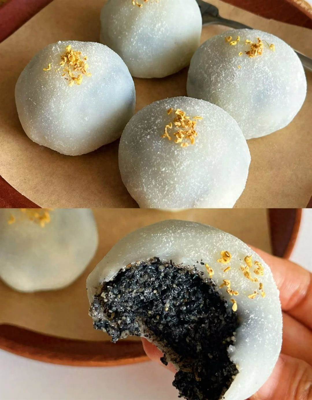 撒上桂花幹,花香馥郁,一口咬下去糯嘰嘰的,黑芝麻餡會爆漿,軟糯香甜,滿嘴穀物香。