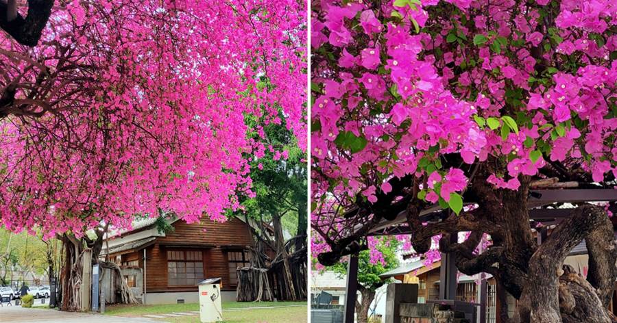在台中國家漫畫博物館內,有一棟充滿日式風情的老木屋,這里不僅有著深厚的歷史底蘊,還被一片絢麗的九重葛花海所環繞。這棟日式老木屋位于台中刑務所官舍群中,如今已成為國家漫畫博物館的一部分。在這里,你可以欣賞到九重葛那絢麗多彩的花朵,它們如同一片片彩色的云朵,與古樸的日式建筑相互映襯,構成了一幅如詩如畫的美景。