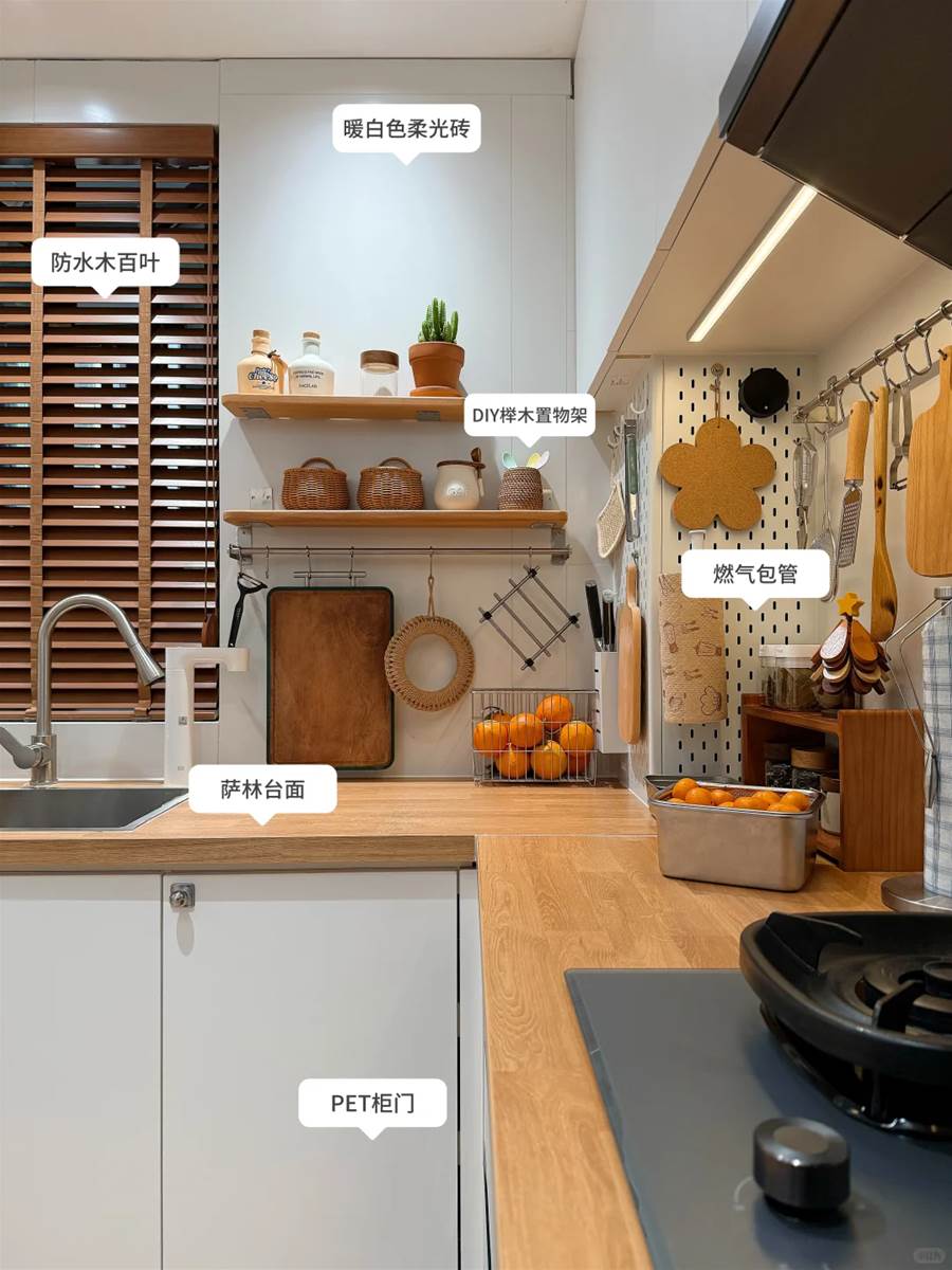 整體風格: 原木+白色|溫潤治愈不壓抑 原木色打底,搭配白色墻磚+白色柜門 整體明亮又溫馨!