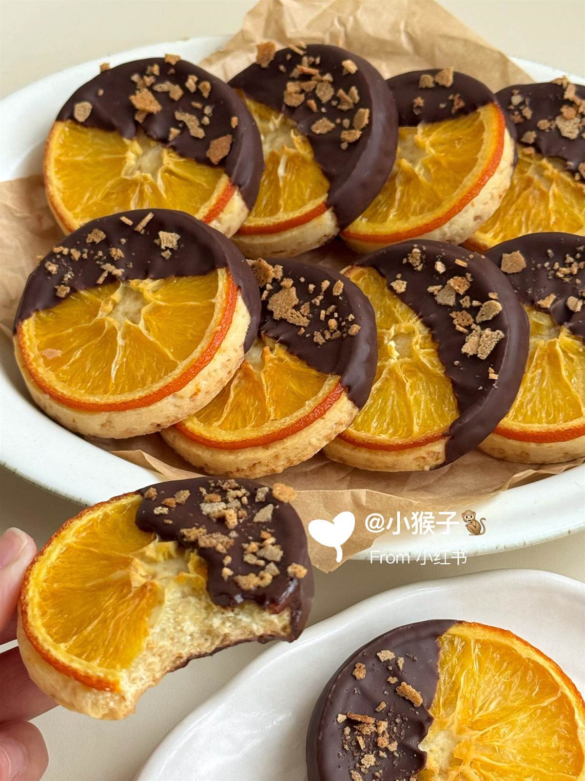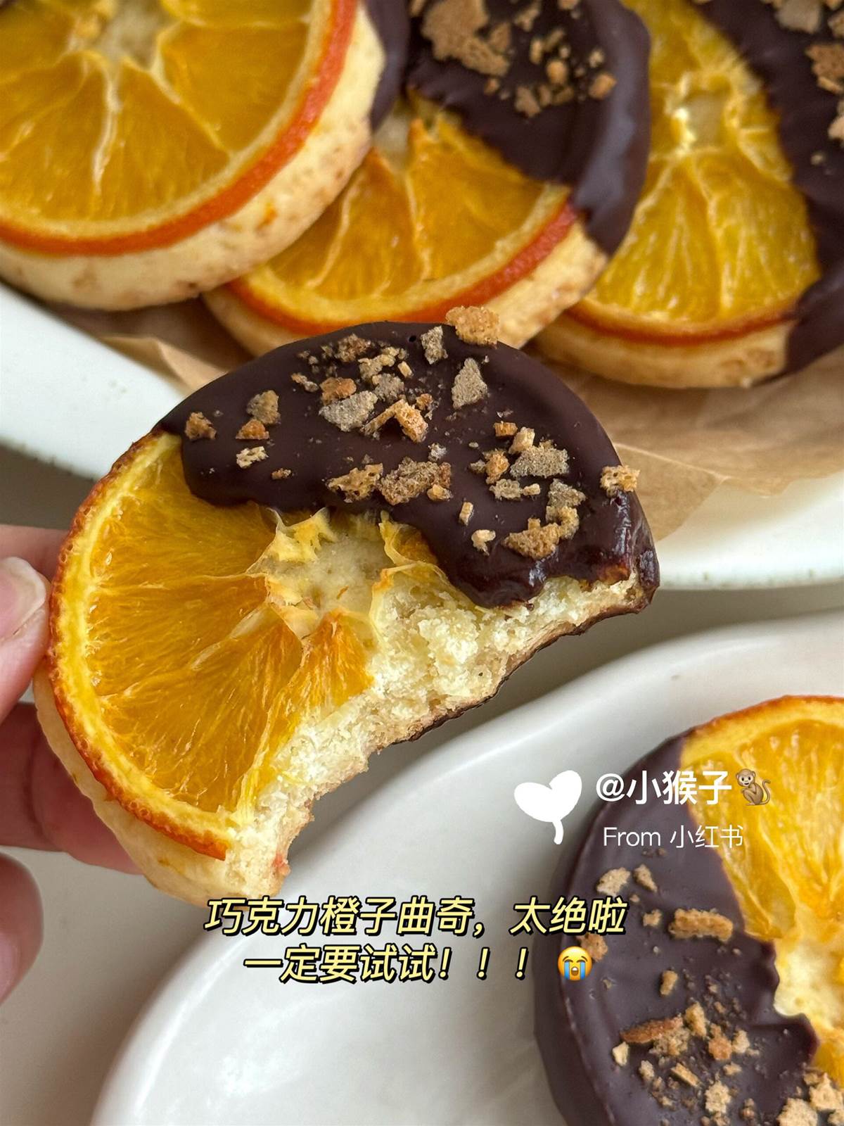 刷到了很多小夥伴的橙子巧克力曲奇,太想吃啦自己也做一盤好解饞啊,滿滿的橙子香味每一口酥脆,吃起來還不膩口很清爽,裹了一半凝固的黑巧克力,一口雙味超滿足啊