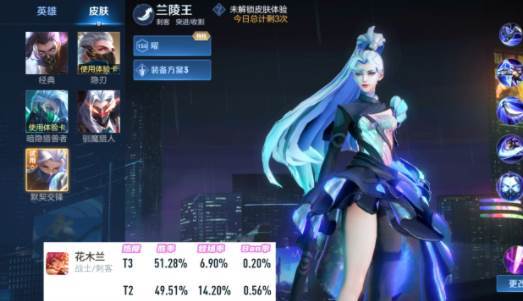 隨著雙蘭限定皮膚默契交鋒的上架,蘭陵王和花木蘭兩位英雄的資料有不同程度的浮動,其中蘭陵王的排位登場率增長了2%,皮膚上架前後的勝率基本不變,而花木蘭在新皮膚上線後,人氣大幅上漲,排位登場率飆升了7.3%,鑒于花木蘭的操作門檻較高,導致練英雄玩家的增多,木蘭的全服排位勝率下滑了1.8個百分點!