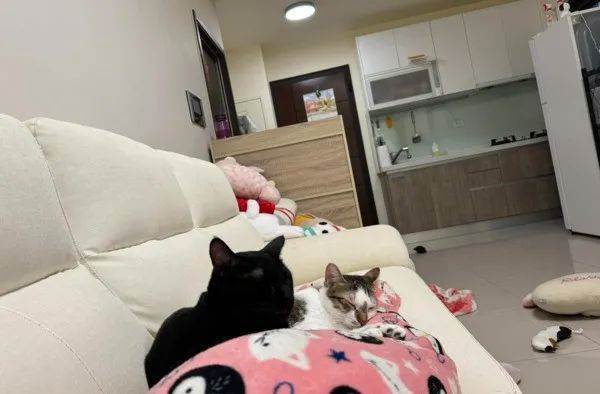 「我發現我休假的時候......身體總會有特別的變化,例如......身上長兩只貓,拿都拿不掉!」媽媽好氣又好笑地說。從照片中可見,碳吉跟喵吉超級愛媽媽,直接黏在大腿上睡覺,露出超幸福的熟睡表情。奇妙的是,它們非常有默契,竟然會越過媽媽凸凸的孕肚,自動到下方趴著。