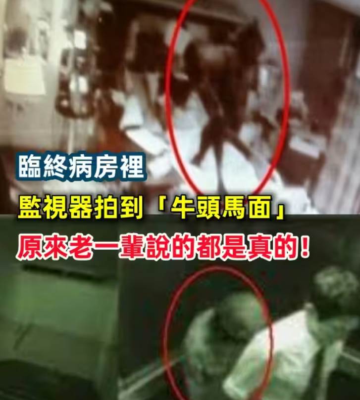 [臨終病人拍到了「牛頭馬面」]中國有個古老的傳說,人在死之前會有陰間的牛頭馬面前來接走。是真的嗎?最近在國外網站上出現下面這張圖,上傳者堅持認為照片是真實的,是從臨終病人觀察室的監控器中拍到的。而這張照片拍攝幾個小時後,病人就離開了這個世界。