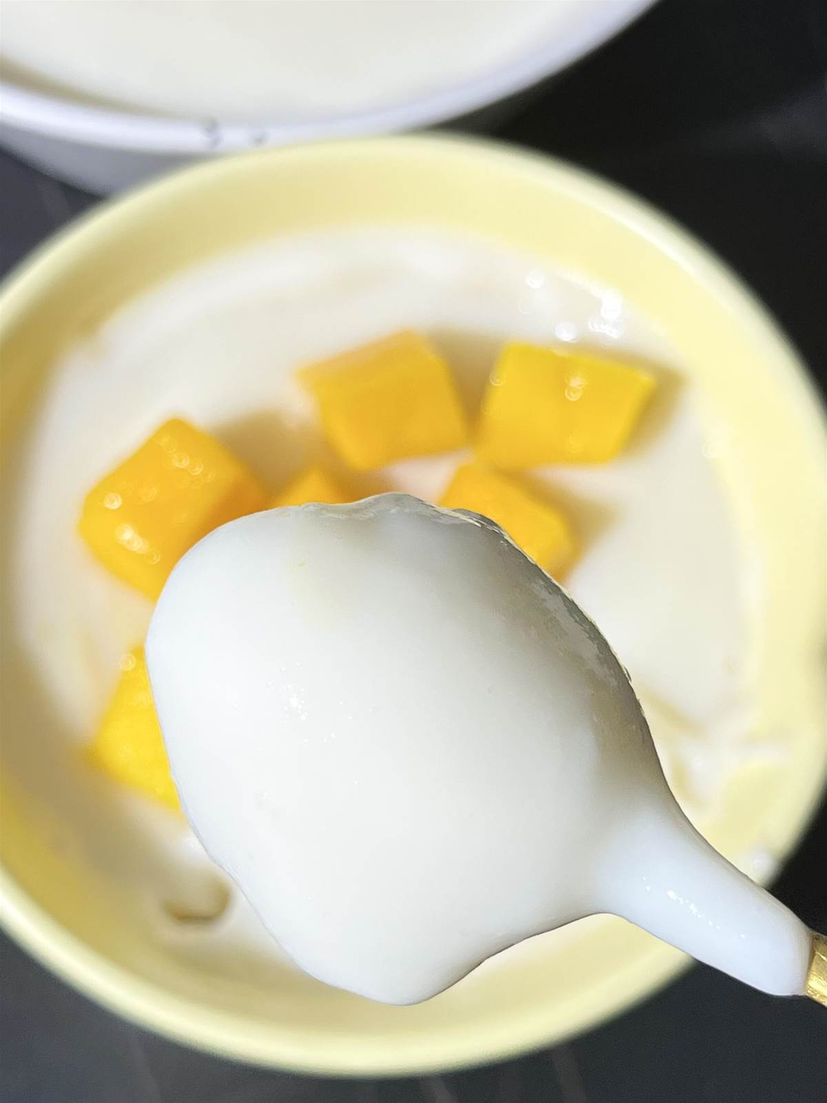口感特點 像布一樣絲滑柔軟,米香中夾著奶香,冰冰涼涼、軟糯香甜,真的吼吼吃! 記得多加芒果?,口感會更清爽!
