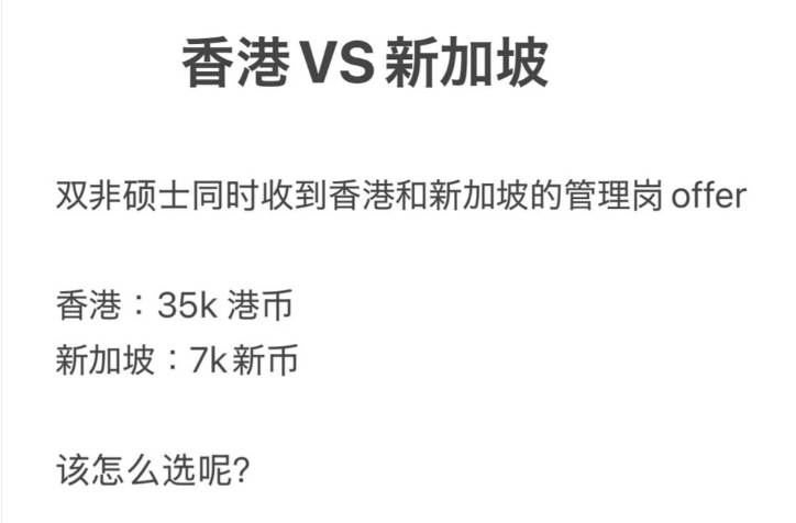 最近在社媒上看到一个网友求助:双非硕士同时收到中国香港和新加坡管理岗offer,应该怎么选?