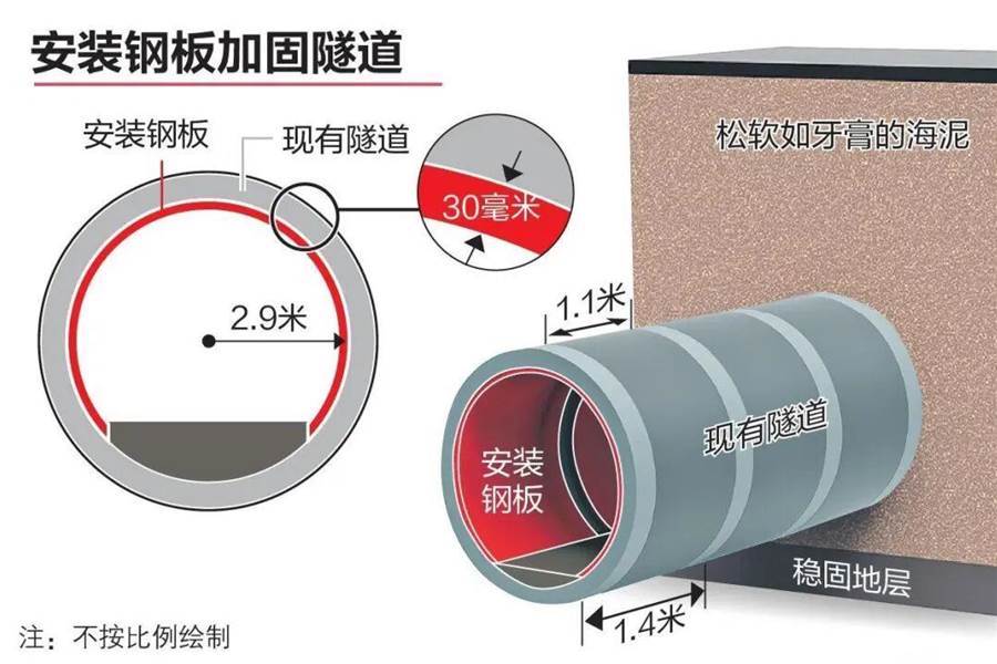 陆交局说,这是为了进行必要的隧道加固工程;这段隧道是建在松软如牙膏的海泥层,会随着时间推移而逐渐固结,导致原本圆形的隧道被压缩成椭圆形,若不安装钢板加以巩固,隧道结构可能形成缺陷,进而导致列车服务中断。