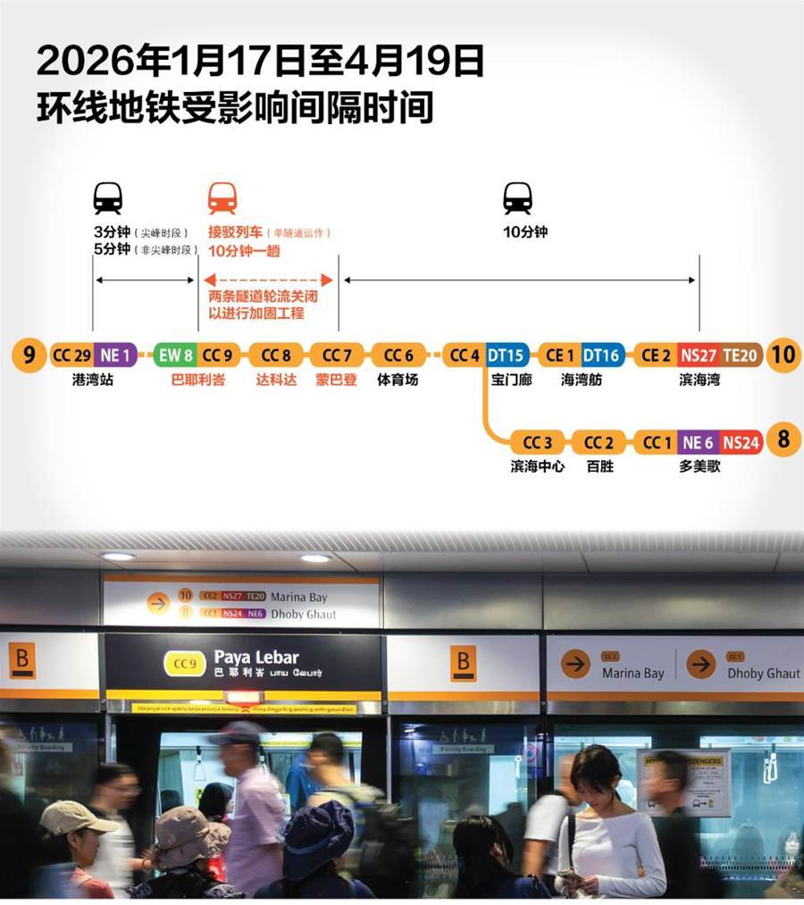 地铁环线东部三个地铁站之间的隧道明年初将轮流关闭约三个月,以进行隧道加固工程,乘客在尖峰时段的车程时间预计会延长多达30分钟。预计每天平均会有约48万名乘客受影响。