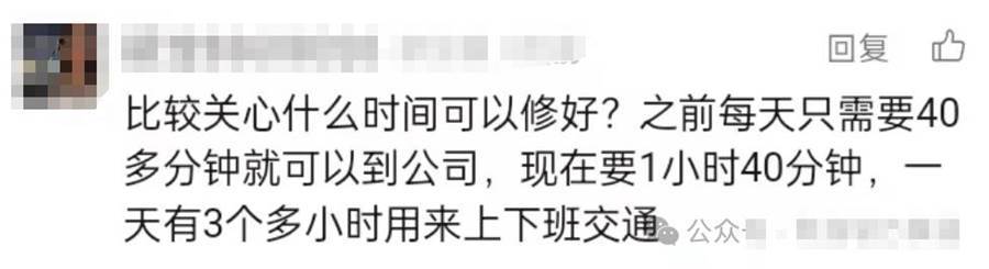 有网友表示,比较关心什么时间可以修好?之前坐地铁通勤40分钟,现在要1小时40分钟……