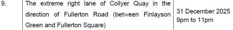 2、哥烈码头往莱佛士码头方向的左侧车道(富丽敦路和莱佛士码头之间)