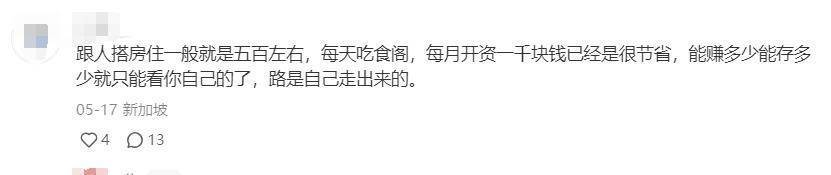 有网友说:“在新加坡能赚多少能存多少就只能看你自己的了,路是自己走出来的。”