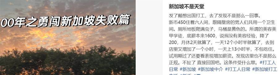 第二天也就是5月18日,小冉再次发表了一篇名为:“00后之勇闯新加坡失败篇”,吐槽新加坡并不是(打工人的)天堂……