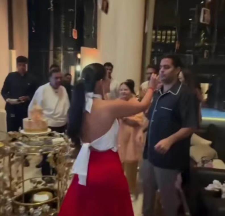 2024年10月,结婚才3个月的拉迪卡迎来30岁生日。安巴尼家为她举办了一场极尽奢华的庆生派对。吹灭蜡烛后,拉迪卡先把蛋糕喂给丈夫阿南特,随后依次喂给公公婆婆和大伯哥,不过大伯哥当时明显有些不开心。