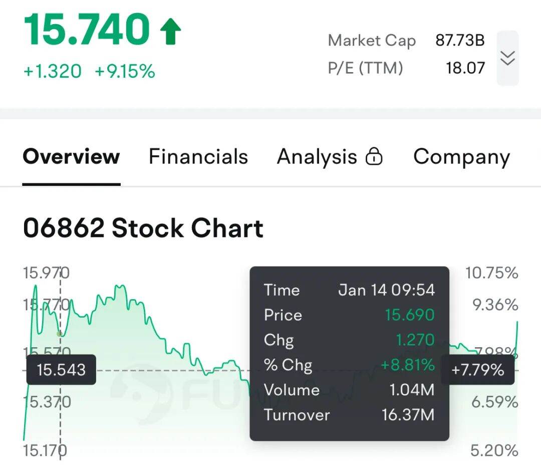 受此消息影响,海底捞股价在14日早盘大幅上涨,盘中一度冲高超过10%,最高触及约 15.94 港元/股,随后虽有所回落,但早盘仍维持在较高水平(约 9.9% 涨幅、15.740港元/股左右)。显示市场对创始人回归管理层的积极反应。