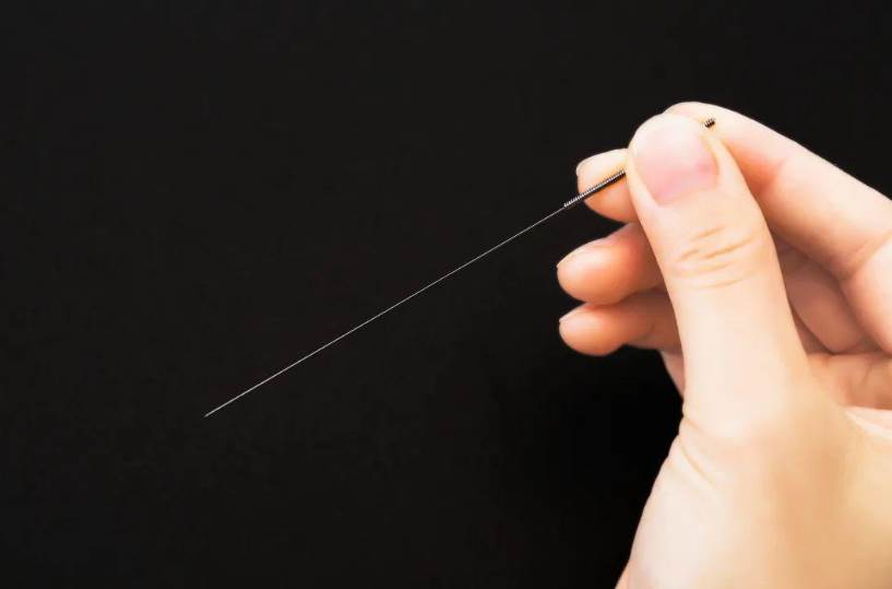 治疗结束后,病人刚坐起来,突然感到右大腿内侧一阵刺痛和不适,一摸才发现——针还在肉里面!
