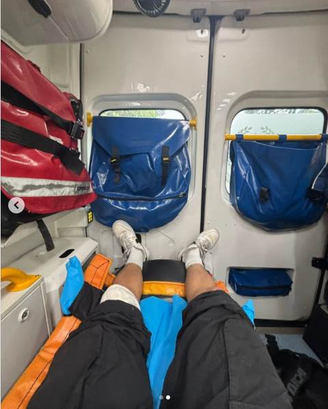 杨岳翰5日在IG限时动态中晒出躺在救护车上的照片,并发文写道:“不好意思,这么晚才回复大家!刚忙着处理车祸的事,现在没事了。”