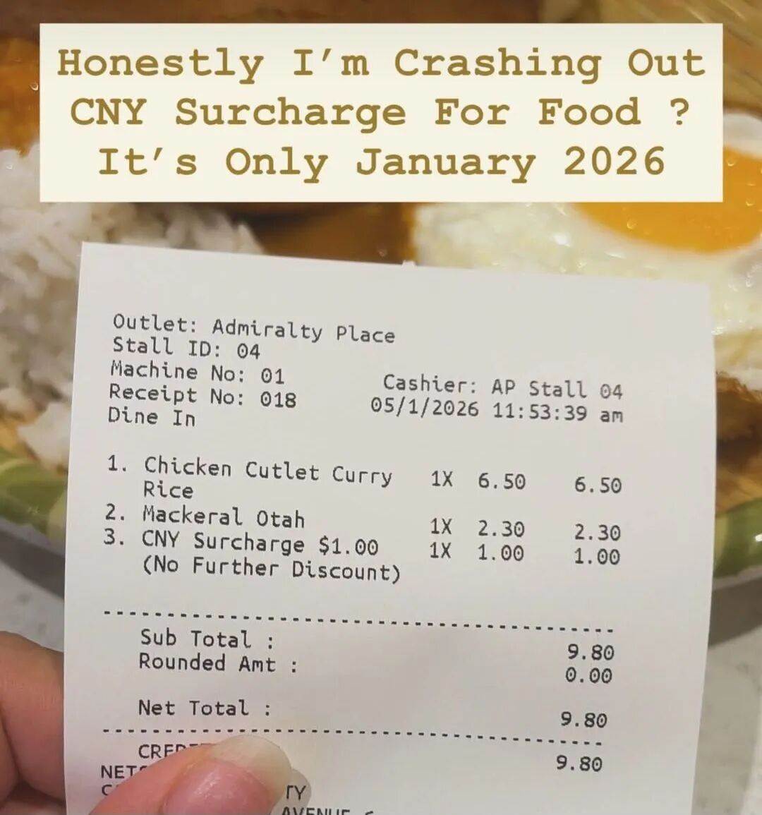 隔壁的泰国餐摊位员工埃妮则说,顾客点餐时应留意收费,“如果收据多出一元,肯定要询问摊主”。她也指出,农历新年附加费一般只在大年初一和初二征收。