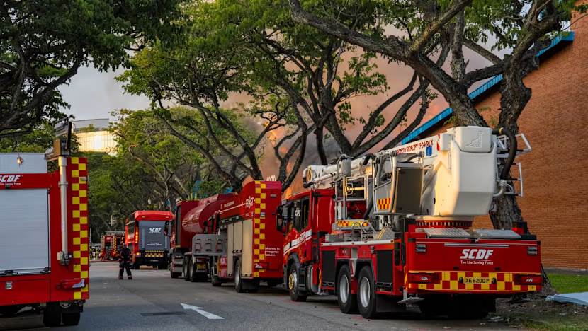 烈焰焚烧3座工厂,新加坡60名消防员激战灭火