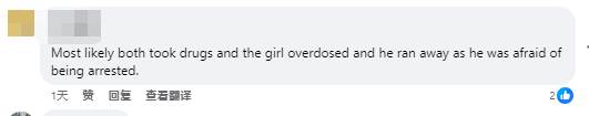 有人猜测或许是二人吸食毒品,女孩吸食过量而亡,男子因此害怕,只能逃跑。