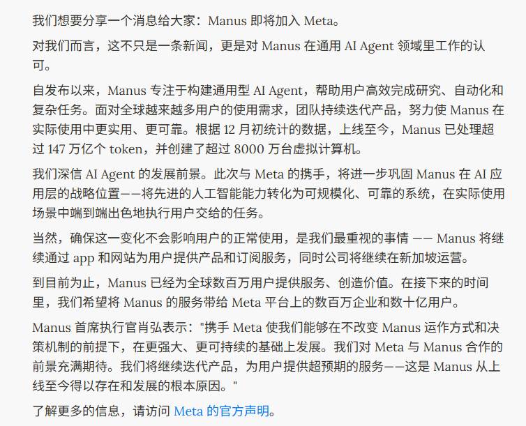 速度之快、金额之巨,其原因绝不是坊间一句“扎克伯格一直是manus用户”的传闻可以解释的。