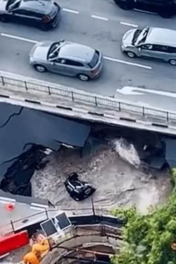 她下意识踩刹车,可眼前的一幕却让她以为自己在做梦 ,好好的柏油路,居然裂开了!地上的碎片哗啦啦掉进不断扩大的黑洞,下一秒,黑洞就扩张到了她的车轮底下。车子迅速向左倾斜,直直坠了下去。