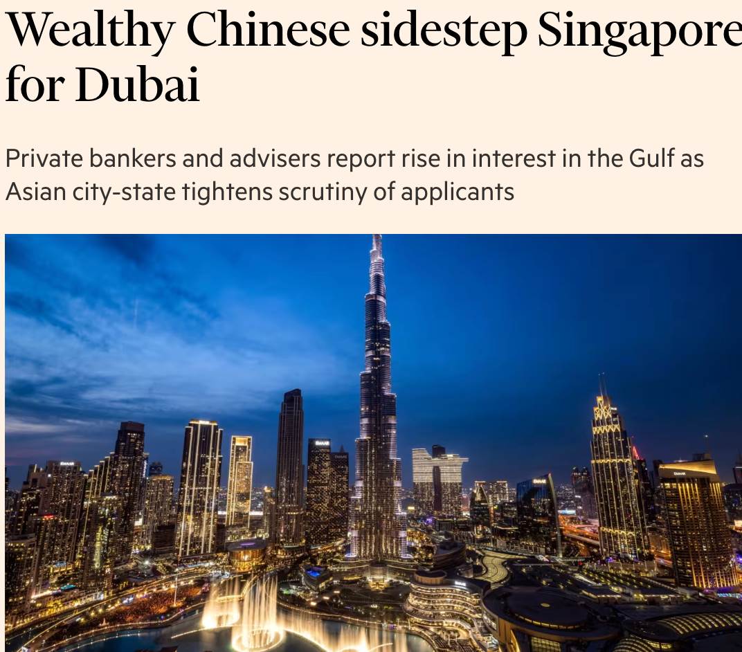 然而,《金融时报》近日一篇重磅报道却释放出耐人寻味的信号——越来越多中国富裕人群,正绕开新加坡,转向迪拜。