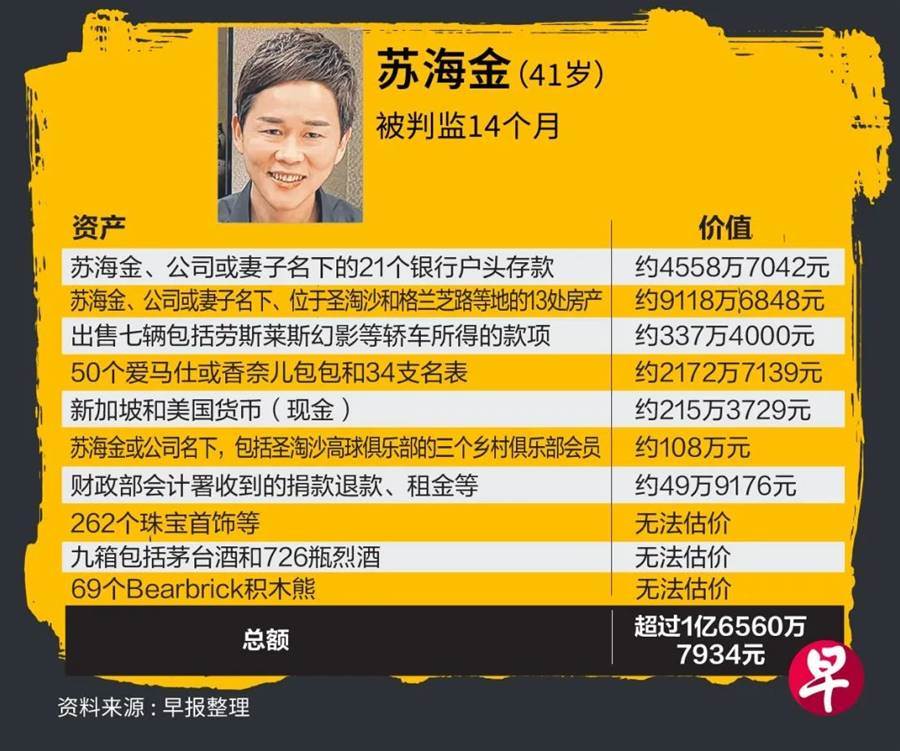 此外,苏海金夫妇的资产总数多达1.65亿元,而当中约95%是苏海金自愿被充公,并超出了他涉案的金额。