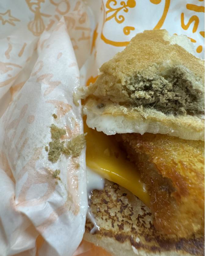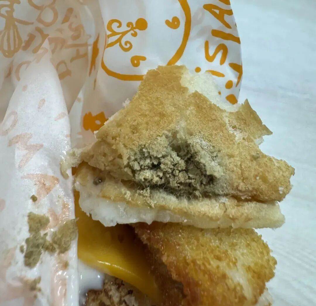 近日,一名顾客在Popeyes买了个鱼肉堡,吃到最后一口才发现——汉堡包上有霉菌!