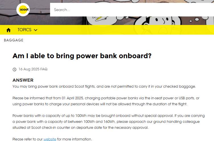 各大航司都在严查不只是酷航,新加坡航空(SIA)早在今年3月就宣布了类似新规,禁止在飞行期间使用充电宝。韩国、泰国的多家航空公司也都有“充电宝必须随身带”、“禁止机上充电”的硬性规定,有的甚至要求充电宝必须装在透明塑料袋里。