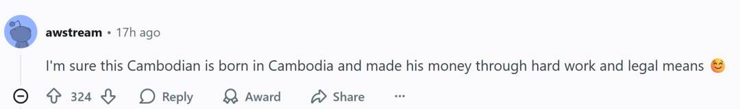 新加坡网友调侃:我相信肯定出生就是柬埔寨人,并且买房款靠合法所得。