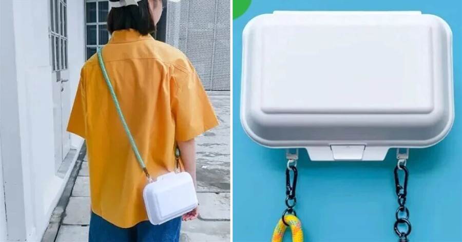 最近,新加坡地铁上有张照片火了——有人背着一个长得跟打包杂菜饭的泡沫盒子一模一样的包!